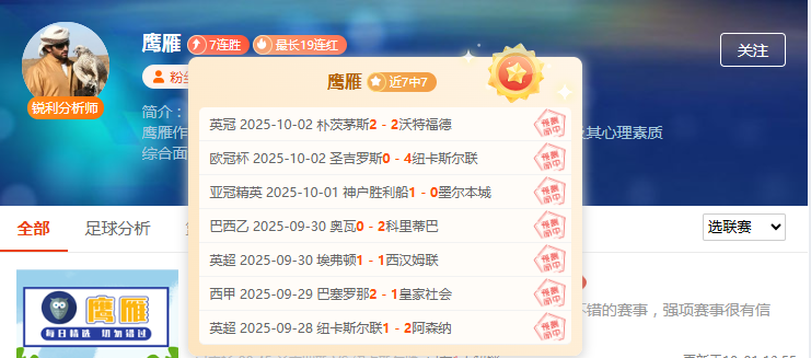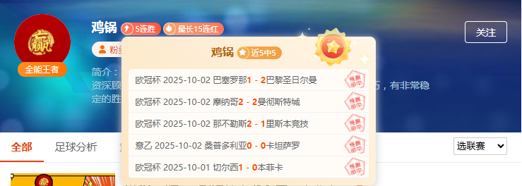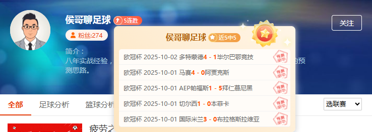 4年经验:实战经验丰富,长期为粉丝提供高质量赛事解析!