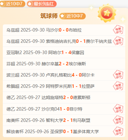 成绩回顾:近10胜7,连续多天都取得正向增长的成绩;今天笔者继续秉承宁缺毋滥的精神,只推有质量有信心的比赛而不是数量搭够,确保每一场比赛都有命中率的;今天笔者同样挑选出信心场次,望大伙们可以一起与筑球师研究胜利的观点。