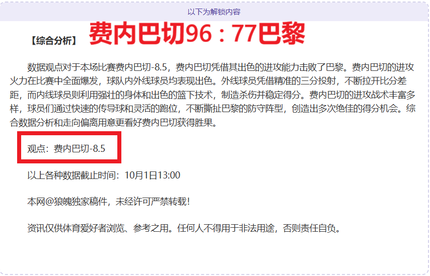 解锁内容包括:综合大数据分析+分解赛事走向+比赛建议+作者观点数据