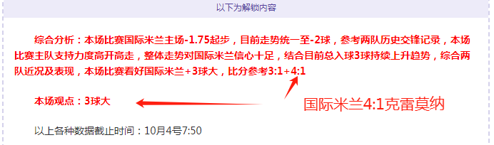 解锁内容包括:综合分析+胜负观点+比分观点