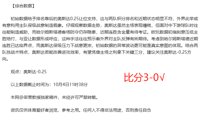 英超12胜8。最高打下14连胜的表现已见证实力。今天继续奉上强项赛事系列,各线赛事都能保证清晰的解读思路与靠谱的选择方向!截至昨天荣誉教授已经有4021场解读经验,今天继续精选5场,多元化的赛事系列,以更高连胜胜利率绩迎接5000场记录来临,关注荣誉教授,成为荣誉教授的好伙伴!