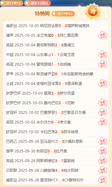 【战绩回顾】昨日双胜,近期成绩17胜12,状态保持十分稳定!特纳姆将凭借多年深耕足球领域的专业视角,结合独家赛事分析方法,深度解析赛果走向。诚邀各位球迷朋友共同交流探讨,让我们携手冲击全胜战绩!