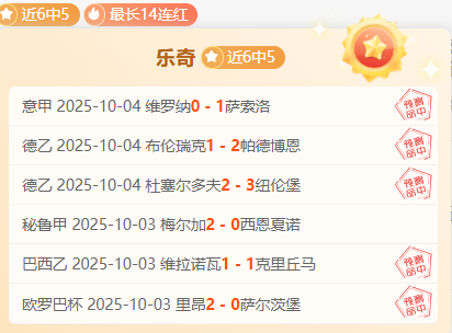 成绩回顾:6胜5,成绩也是相当火热,且比较稳定;今天比赛内容也相当丰富,笔者继续为大家深研信心的比赛;大家可以持续关注乐奇了解赛事的走向。
