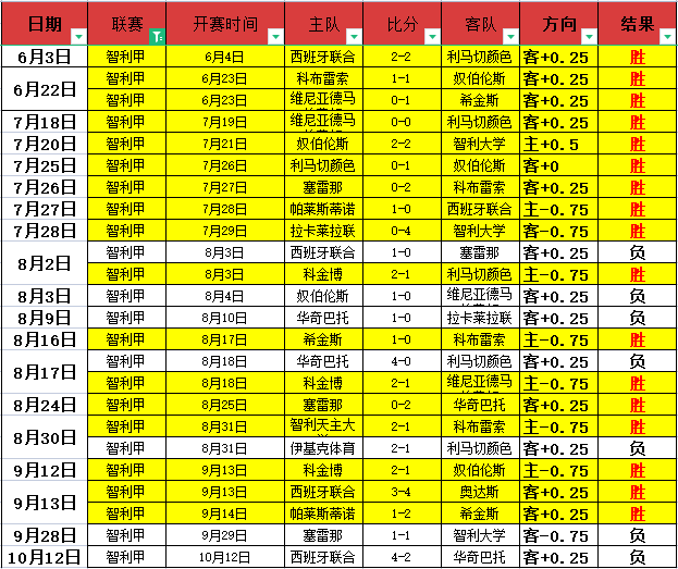 智利大学在主场的表现尤为出色,他们在11个主场比赛中拿下了9场胜利,仅败掉2场,主场胜算高达81.8%。这表明他们在主场作战时拥有较强的战斗力和较高的胜算。相比之下,帕莱斯蒂诺在客场的战绩也较为稳定,12个客场比赛中拿下5场胜利,胜算为41.7%,虽然不及智利大学的主场胜算,但也显示出了一定的竞争力。