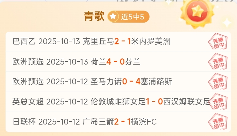 最近更新:2025-10-13 10:28 近8中7最长9连红