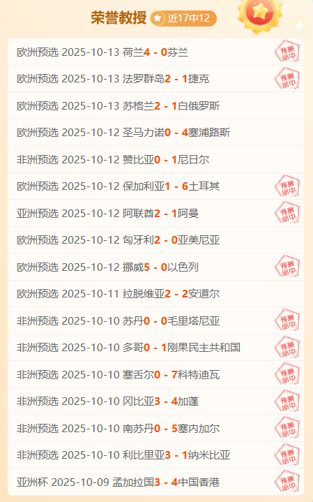 打出17胜12,非洲预选7胜6。最高打下14连胜的表现已见证实力。今天继续奉上强项赛事系列,各线赛事都能保证清晰的解读思路与靠谱的选择方向!截至昨天荣誉教授已经有4066场解读经验,今天继续精选5场,多元化的赛事系列,以更高连胜胜利率绩迎接5000场记录来临,关注荣誉教授,成为荣誉教授的好伙伴!