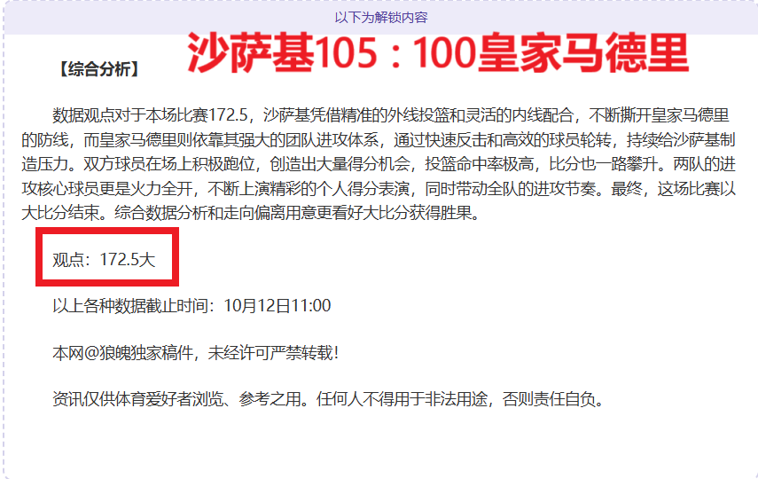 解锁内容包括:综合大数据分析+分解赛事走向+比赛建议+作者观点数据