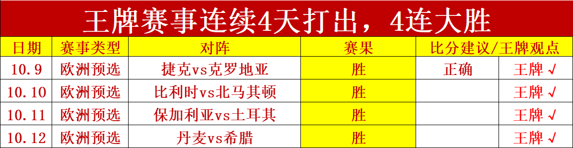 一、战绩回顾:昨天整体继续出色,欧洲预选近23胜16,另外公推继续出色,继续拿下3胜2,公推近15胜10,(命中8场比分),私推近期也是继续出色,昨天6胜4,近20胜14,王牌赛事更加炸裂,王牌赛事连续4天打出,状态出色,笔者已经开启全面狂胜模式。