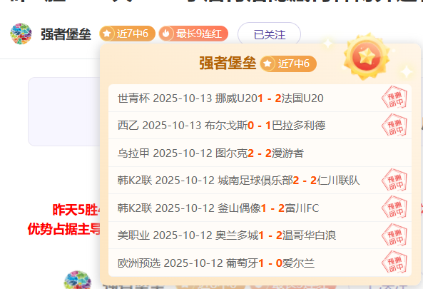 最近更新:2025-10-13 14:45 近7中6最长9连红