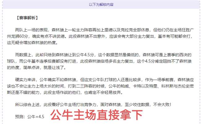 以下为解锁内容:含赛事解析+数据分析+观点参考