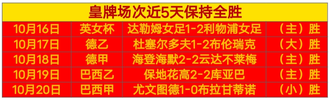 🏦 首页 即时比分 皇牌场次昨晚再胜,近五天全胜,本场冲击第六关: