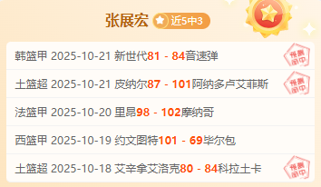 昨日单挑韩篮甲成功获胜。目前连续两天单挑取胜。张展宏继续深挖数据,不吹不擂真实成绩有目共睹。继续为大家送上高质量和专业的赛事理解,敬请大家关注!