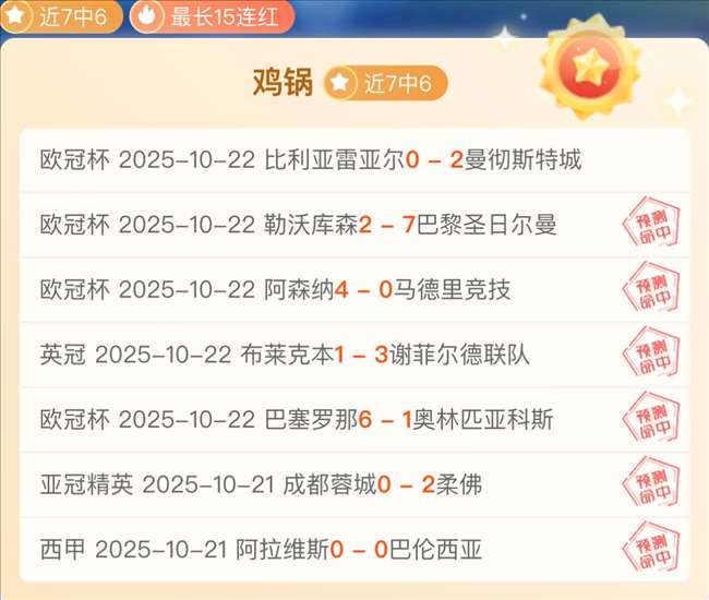 最近更新:2025-10-22 17:53 亚冠精英近6胜率83%近8中7