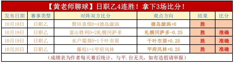 赛事回顾:昨天信心场次日职乙拿下,日职乙拿到了4连胜,西乙也命中科尔多瓦,不过其它场次表现一般,整体发挥不太好,抱歉,今日我们调整状态,精挑细选以稳为主,期待本周能够有一个好的收尾!今天早场会先带来日职乙和韩K,晚点还会有公推场次!