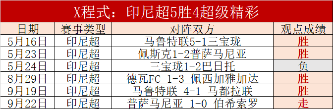 印尼超5胜4,信心很好的早场亚系赛事。周末真的十分精彩,两天狂夺胜利14胜9,当前状态非常好!
