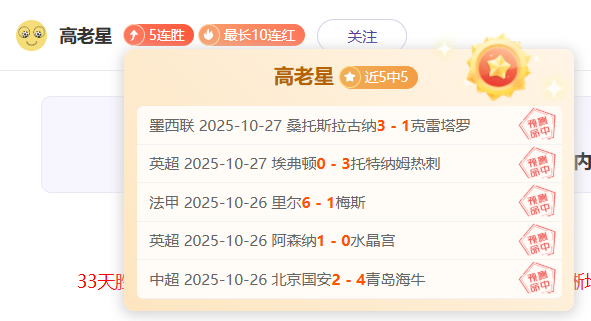 擅长联赛:中日韩澳+五大联赛,焦点表现:巅峰战绩月内30战胜23,分析风格:从基本面探底结合内部数据变化追踪,权衡主客战绩分配偏重要点。