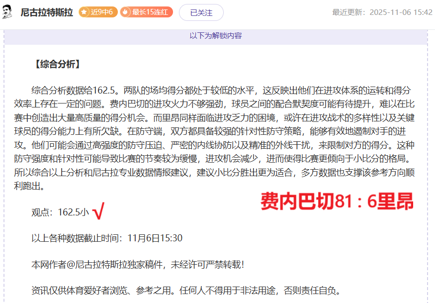 解锁内容包括:综合分析+比赛建议(数据观点+附加观点)