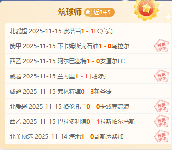 成绩回顾:近8中5!状态十分火热;今天笔者继续秉承宁缺毋滥的精神,只推有质量有信心的比赛而不是数量搭够,确保每一场比赛都有命中率的;今天笔者同样挑选出信心场次,望大伙们可以一起与筑球师研究胜利的观点。