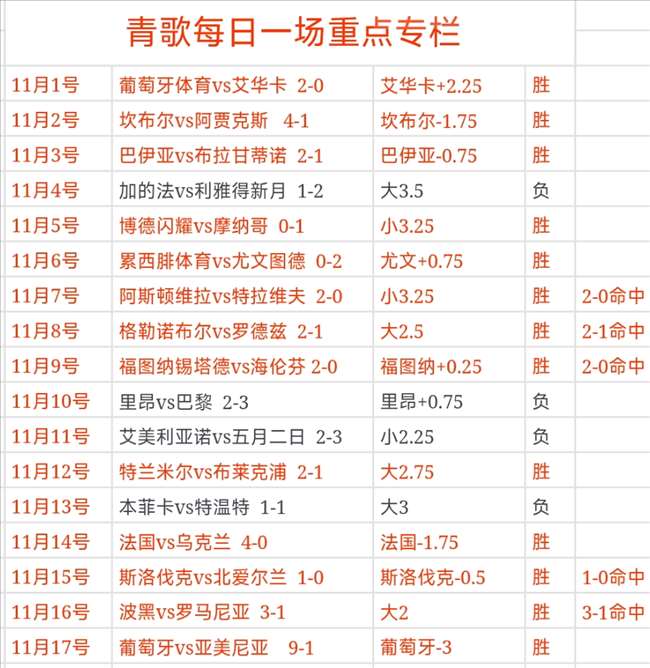 青歌深耕于国内外次级联赛,在某个时间段寻出最值得入手的比赛,长期都保持着不错的收益,昨日又是大大大丰收!长线来到了28中21(75%)的好成绩,重点欧预赛依旧轻松拿下!本月重点场次来到了17中13(76.4%),今日继续关注每天必打的重点场次以及其余信心赛事情报速递!