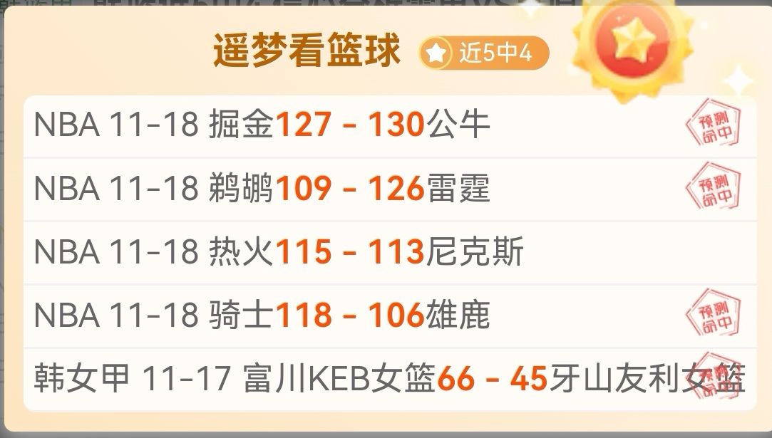 篮球恢复状态,近5中4.韩篮一直保持稳定,今天两场信心拿下,共同进步