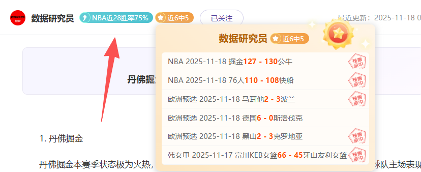 周末休息,昨日重新起航,近6中5,早上的两场NBA咋们继续收,NBA作为我们的强项,近28中21,命中率已经来到了75%,话不多说上今日菜系!