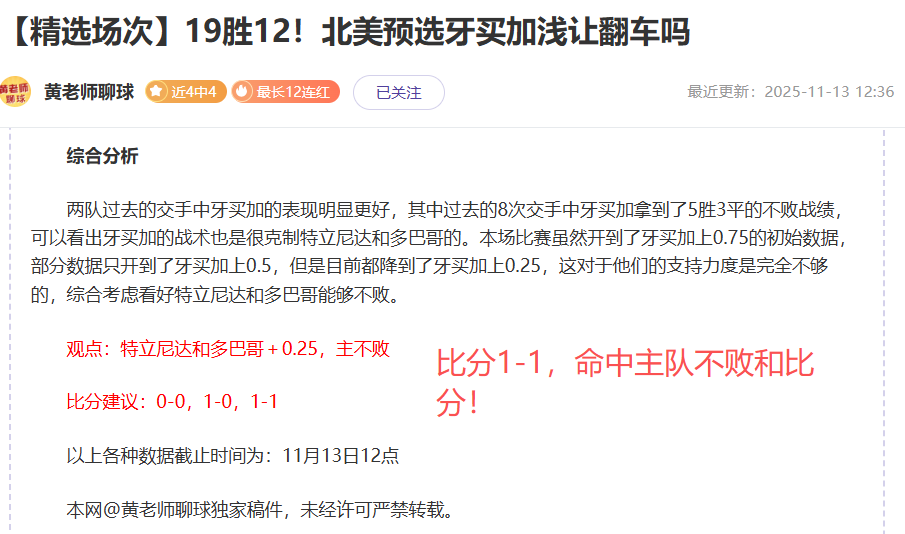 赛事回顾:昨日4场3胜1走全不败,本周净+3!状态爆棚!今日继续精挑几场强项赛事解析!
