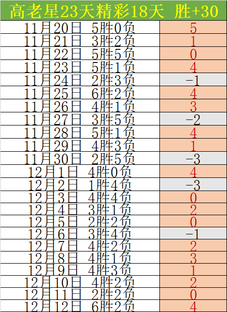 德甲16胜13,周末五大联赛较多,更加精彩发挥将出现。昨天8胜6,连续胜利来到第6天,23天胜18天胜+30,9月胜+11,10月胜+19,11月胜+22,连续3月双位胜增长