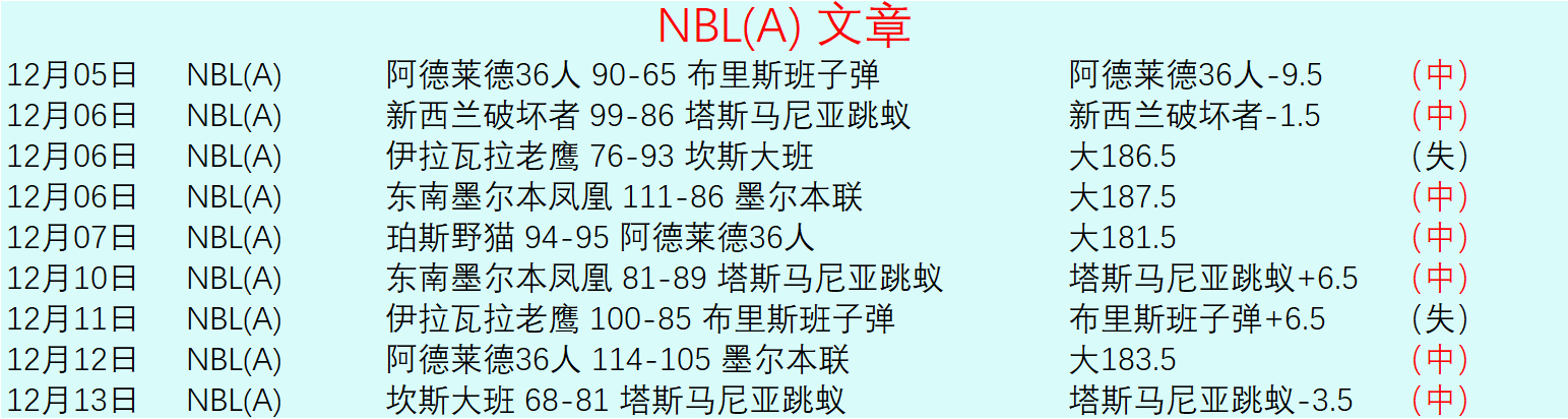 悉尼国王上赛季是16胜13负,进攻端90数据左右,防守端88数据左右,附加赛,悉尼国王88-95阿德莱德36人,悉尼国王无缘季后赛了。悉尼国王近期一些赛事情况,2025-12-12珀斯野猫79-108 [42-44]悉尼国王,2025-12-03新西兰破坏者95-90 [49-47]悉尼国王,2025-11-23塔斯马尼亚跳蚁104-81 [60-40]悉尼国王,一起看看。目前常规赛,墨尔本联13胜5负,悉尼国王8胜7负,