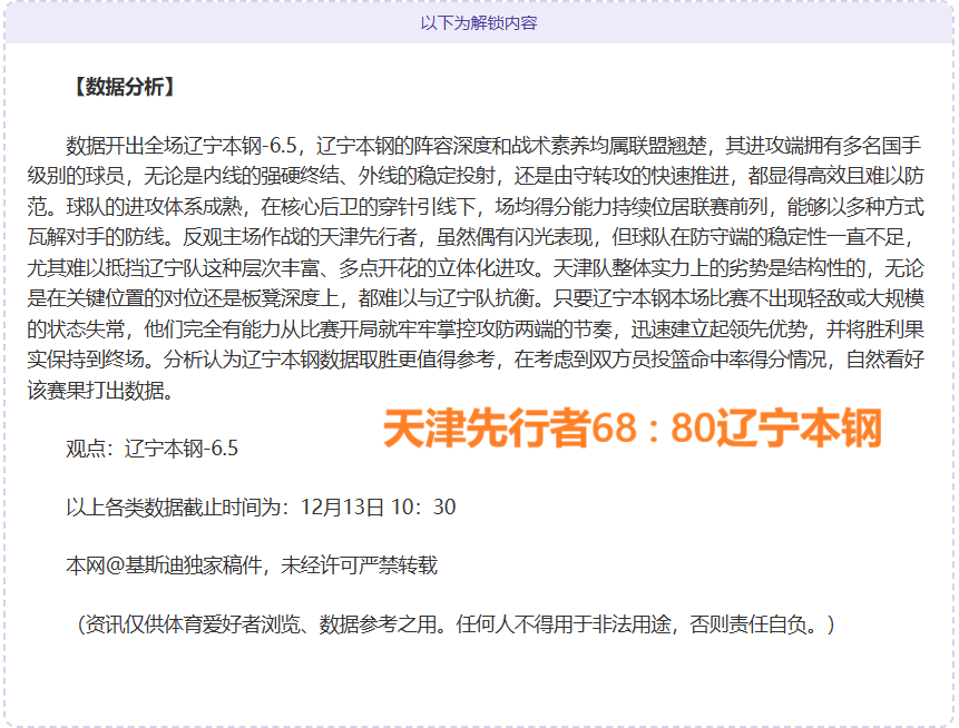 【成绩回顾】昨CBA比赛获得胜利,精选比赛拆解本期再创连胜新高度,篮球方向连胜呈现非同凡响,拆解精准比赛继续收获连胜,篮球板块拆解数据勇往直前,资深篮球爱好者,用独立方式拆解赛事再为大家奉上。以下再为大家分享一场精彩赛事,敬请期待!