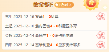 近期成绩4胜3,状态稳定。祝大家生活如足球赛场般精彩,好运相伴,胜利连连!数据揭秘保持长胜心态,看到的朋友不要再犹豫了。