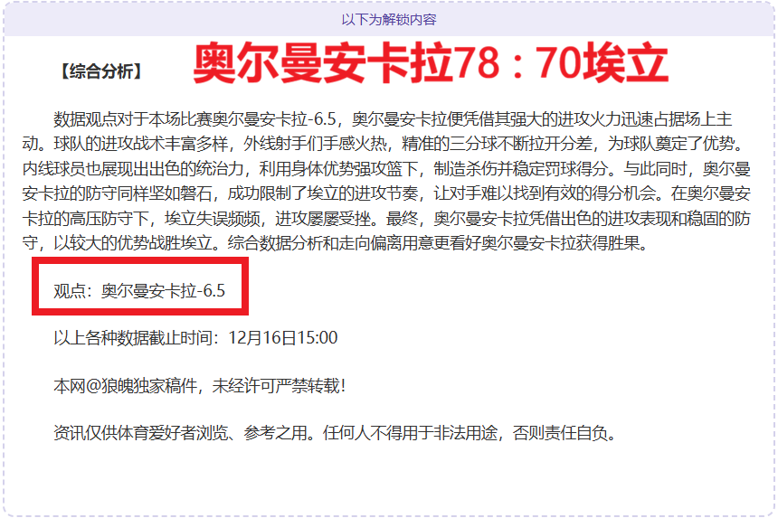 解锁内容包括:综合大数据分析+分解赛事走向+比赛建议+作者观点数据