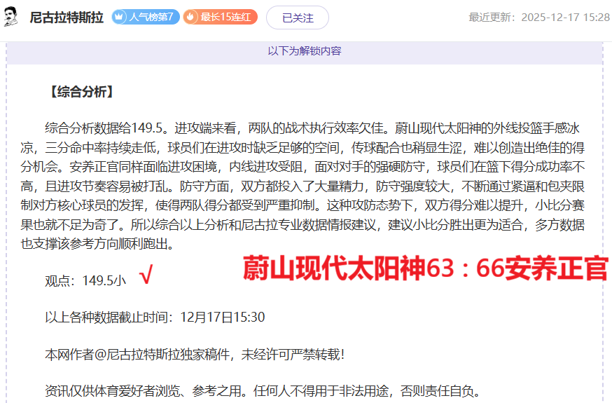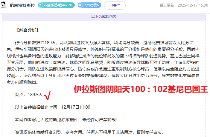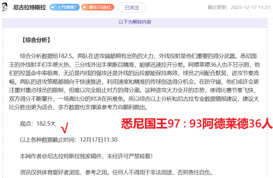 解锁内容包括:综合分析+比赛建议(数据观点+附加观点)
