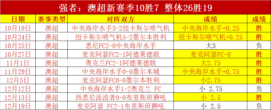澳超本赛季10胜7,整体26胜19,长期出色。昨天5胜4,周末就是胜利的启动键。11月胜+16,10月胜+16,过去两个月合计胜+32,月成绩非常精彩